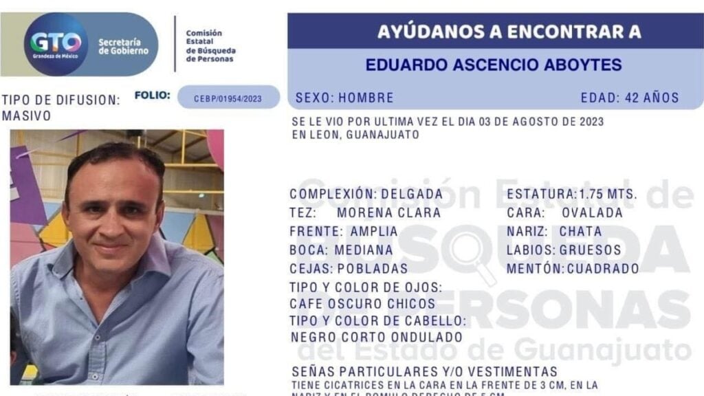 Fue a través de una ficha emitida por la Comisión Estatal de Búsqueda de Personas que se daban a conocer los generales de Eduardo, quien tenía 42 años y había sido visto por última vez los primeros días de este mes en el municipio de León.