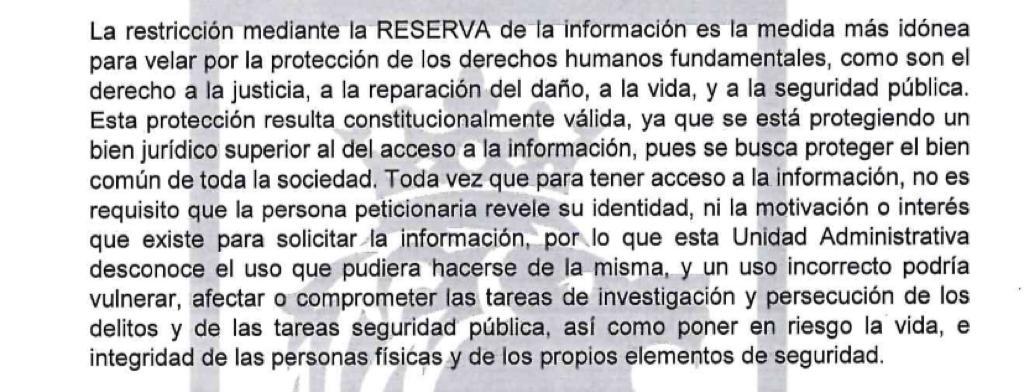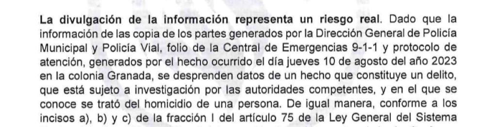 En la respuesta del municipio se explicó que hay un riesgo demostrable en la publicación de la información sobre la operatividad en el caso de Milagros, aunque en ejercicios anteriores de transparencia los partes se hicieron públicos.