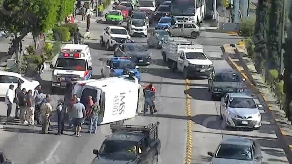 El jueves una ambulancia se volcó en León por la falta de precaución del conductor de un vehículo Pointer que circulaba por la calle Apolo en el bulevar Adolfo López Mateos, que coincidió con el costado izquierdo de la ambulancia que llevaba los códigos de sirena activados.
