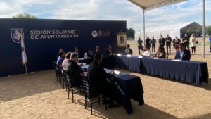 León, Guanajuato - En medio de una cancha de tierra, el Ayuntamiento de León llevó a cabo la sesión solemne para conmemorar 200 años de que
