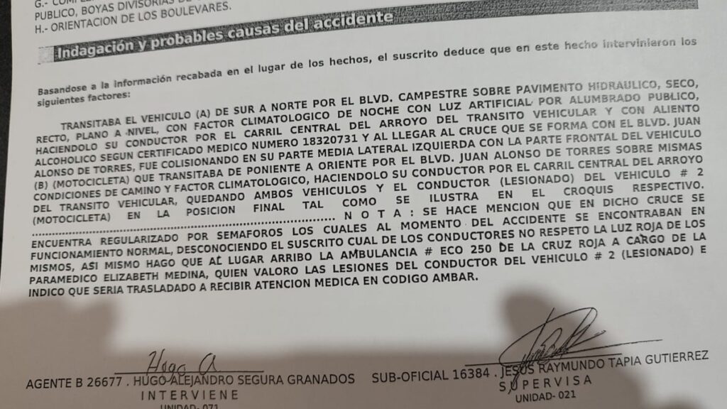 Es así como Uriel narró su propia historia, siendo víctima de un percance vial registrado la madrugada del 7 de enero en el cruce de los bulevares Campestre y Juan Alonso de Torres.
