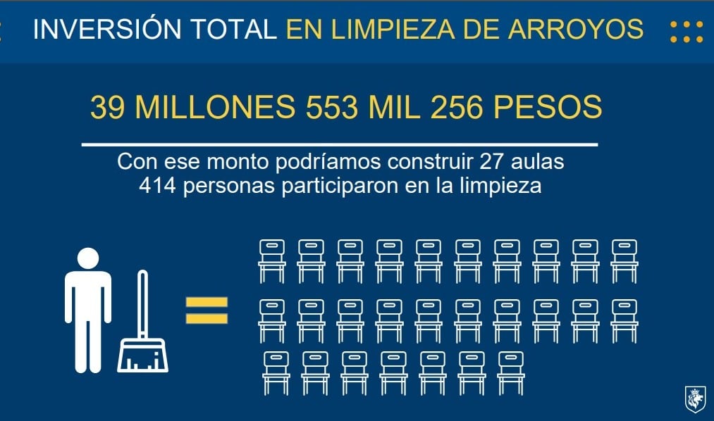 Para la limpieza de arroyos se invirtieron 39 millones 553 mil 256 pesos, con lo que se pudieron haber construido 27 aulas.