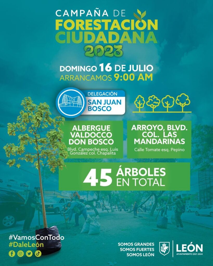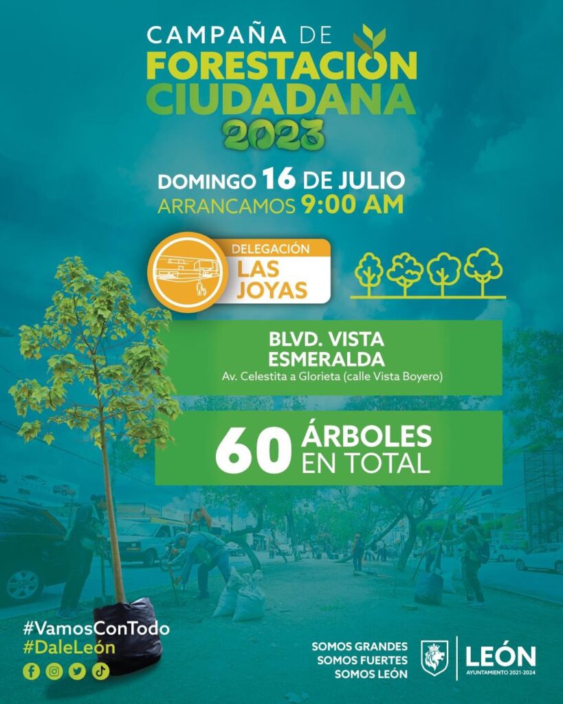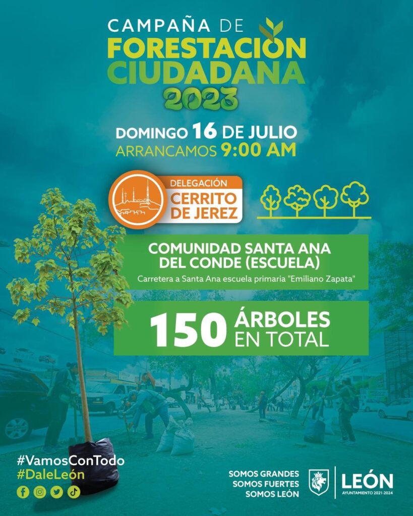 En punto de las 9:00 horas de este domingo 15 de julio se realizará una campaña de reforestación en todas las delegaciones de la ciudad, como Coecillo, San Juan Bosco, Cerrito de Jerez, Cerro Gordo, Las Joyas, San Miguel y Del Carmen.