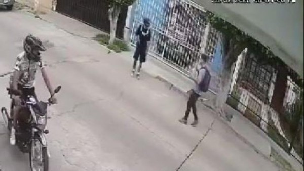Un video captado por una cámara de vigilancia en la colonia San Isidro, muestra el momento en que dos hombres en moto asaltaron a un estudiante que caminaba en una de las calles a plena luz del día.