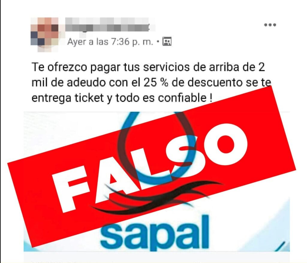 Esta estafa se suma a la que corre en redes sociales, a través de la que ofrecen la gestión de un descuento en el pago del recibo o adeudos. Posteriormente el cliente del SAPAL hace el pago correspondiente en una cuenta ajena a la institución.