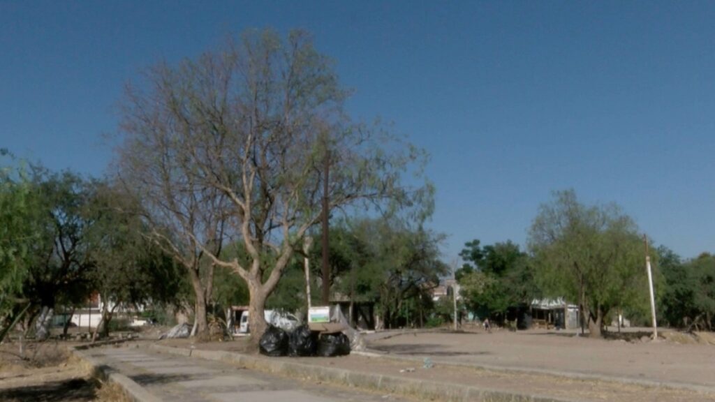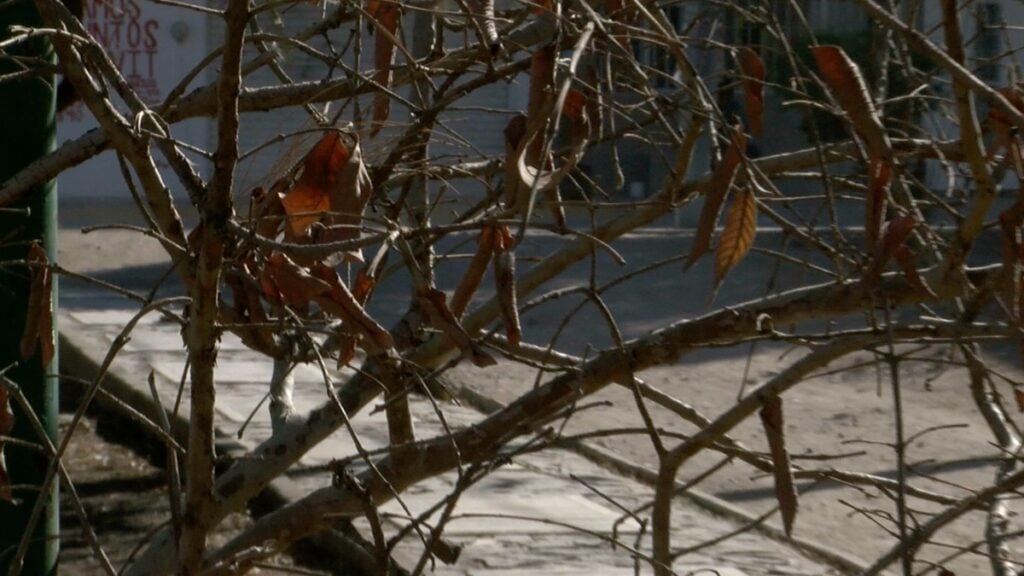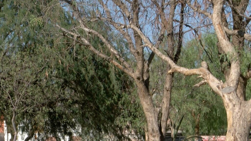 Los árboles reflejan la sequía que pega en la colonia Desarrollo El Potrero, en León, en plena oleada de calor.