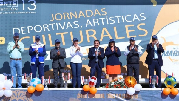 La alcaldesa fue la encargada de realizar la declaratoria inaugural de las Jornadas Deportivas, Artísticas y Culturales de la Sección 13 del Sindicato Nacional de Trabajadores de la Educación, que encabeza el secretario general, Raúl Espinoza Limón.