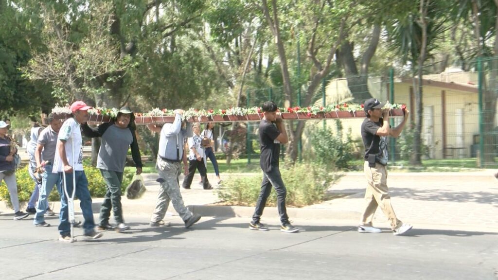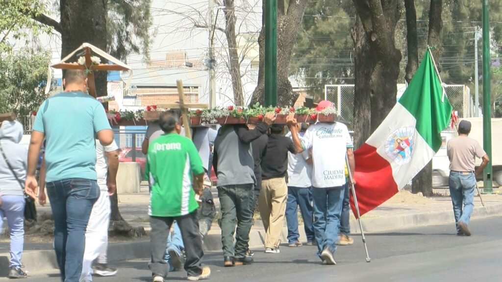 Como cada año, y en honor a su padre, Benjamín se une a la peregrinación que va del Parque Hidalgo al templo de San Juan Bosco en el día del albañil