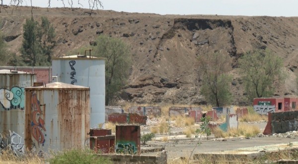 Desde eco bulevar que conecta a San Francisco del Rincón y León, es visible esta montaña que no es de arena ni de grava, son mas de 340 mil toneladas de desechos tóxicos que permanecen a casi una década de la clausura de la Química central de México.