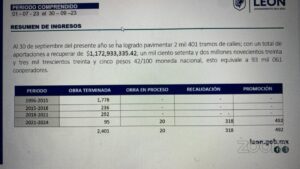 Fideicomiso de Obras por Cooperación (Fidoc) que reportó que actualmente hay 6 mil 74 leoneses que van al corriente con sus pagos, aunque esto significa que