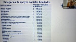 También se brinda ayuda en la categoría de apoyo social. Lo dividimos tanto por rubros como por montos… los apoyos más solicitados siguen siendo servicios funerarios”, explicó el titular de la secretaría Allan Michel León Aguirre.