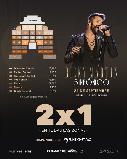 Ricardo Arjona. Por la poca venta de boletos, se realizaron promociones en varios medios de comunicación y se lanzó la promoción de 2x1 en todas las zonas.