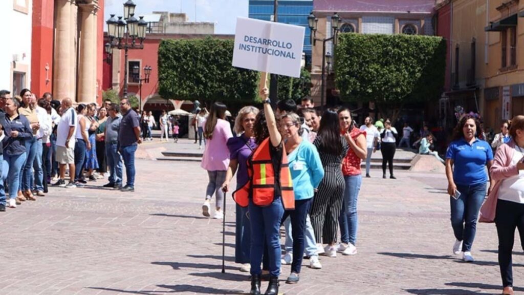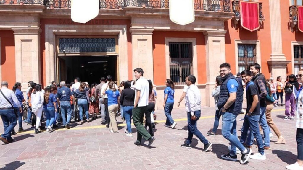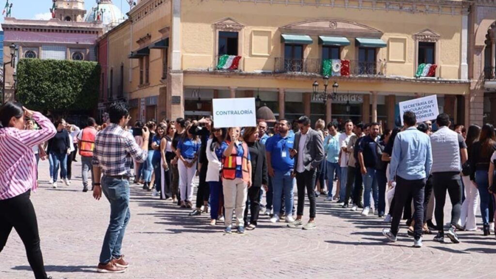 León - Cuatro minutos tomó a poco más de 700 personas desalojar la Presidencia Municipal de León, como parte del simulacro sísmico por el Día Nacional de Protección Civil.