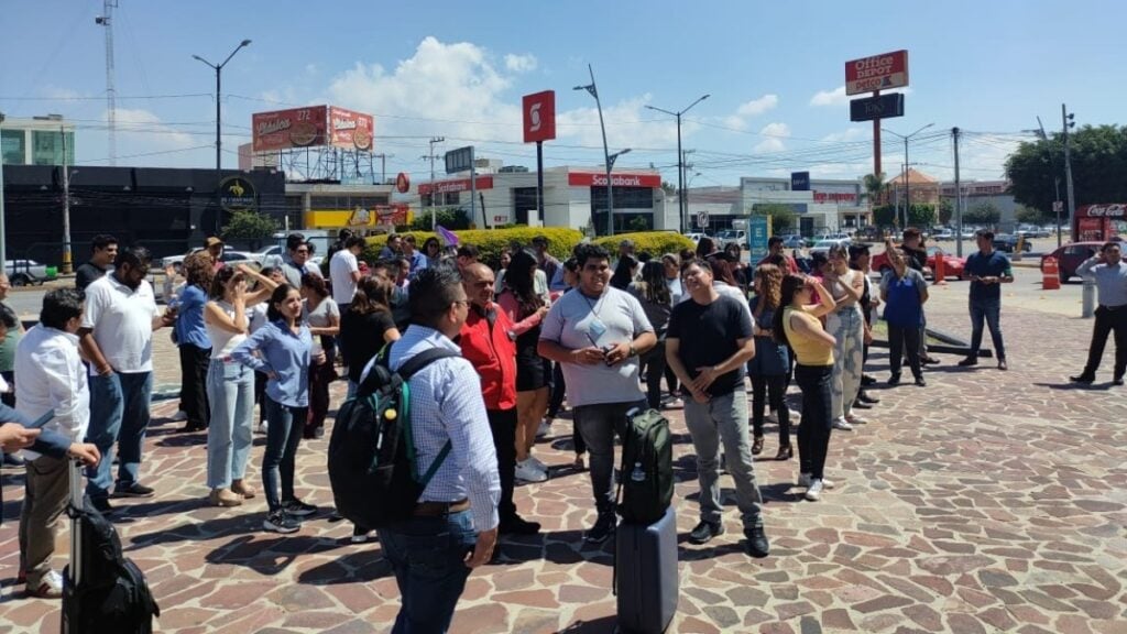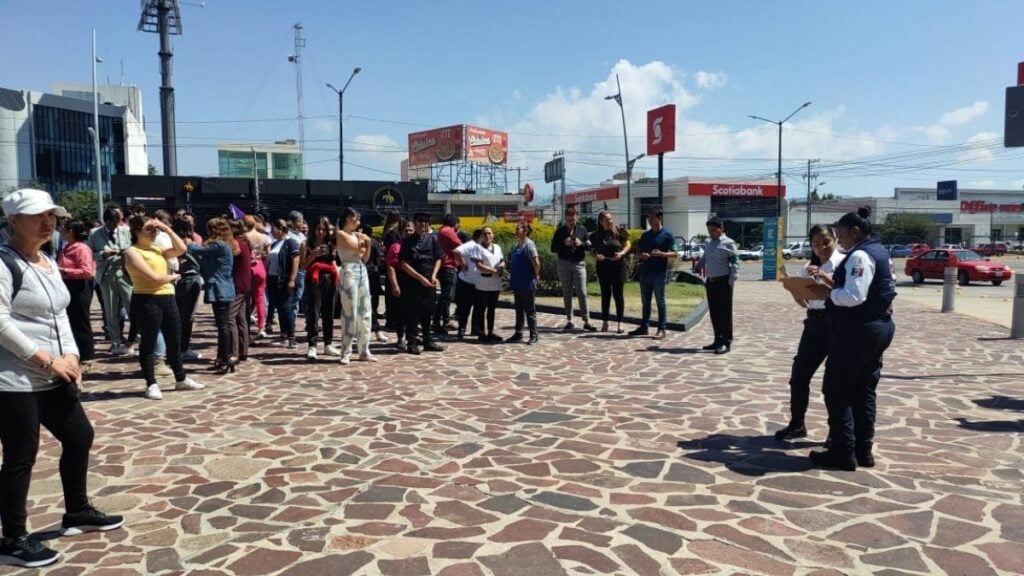 Cuando parecía que el simulacro terminaba, empleados de Gayosso, ubicado en dicha Plaza Stadium salieron para hacer el protocolo, invitados por personal de Protección Civil de León.