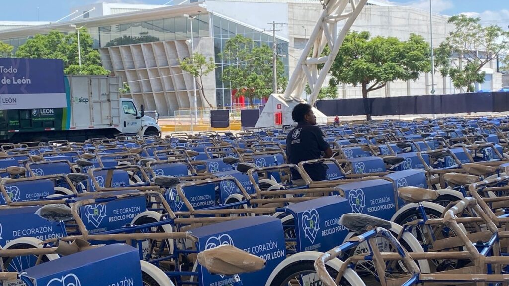 León, Guanajuato - El municipio de León entregó 500 triciclos de carga a recolectores que buscan entre los desechos materiales para reciclar, venderlos, y llevar sustento a sus familias.