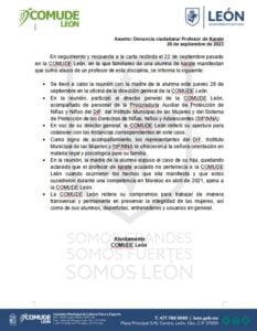 Comude León reiteró su apertura para colaborar con las instancias correspondientes en este caso”, señala el documento.