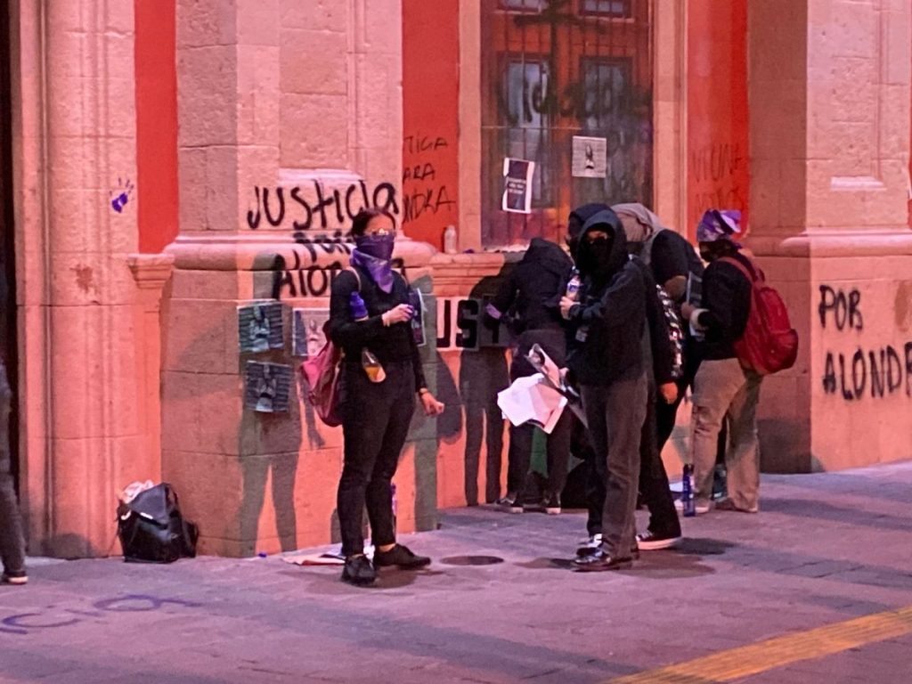 ¡Justicia!, y ¡Ni una más!, fueron las consignas que se gritaron afuera de la presidencia, luego vino un montón de imágenes exigiendo justicia y grafitis en la puerta de presidencia por parte del ‘bloque negro’ que se hizo presente en la manifestación.