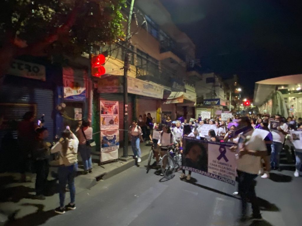 El contingente extendió la ruta de la manifestación, pasando de la plaza principal a la avenida Miguel Alemán, exigiendo justicia en el exterior del local en donde fue localizada Alondra, bloqueando la zona.