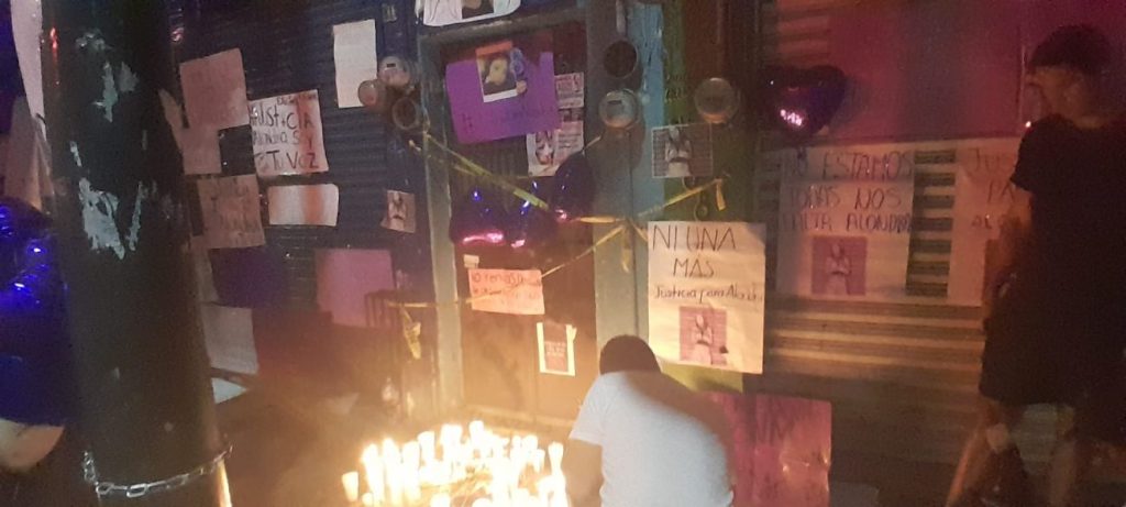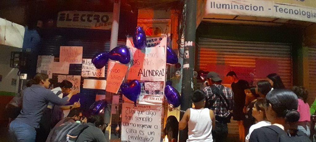 En lugar poco a poco se fue iluminando con veladoras, globos, y carteles con la foto de Alondra Janeth en donde exigían justicia.