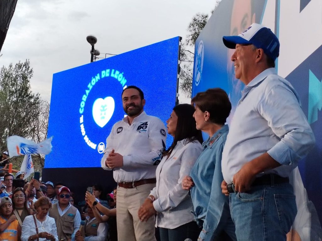 Desde las seis de la tarde, simpatizantes con gorras y banderas azules esperaron al candidato; al lugar también se presentó la candidata por la alcaldía de León, Alejandra Gutiérrez.