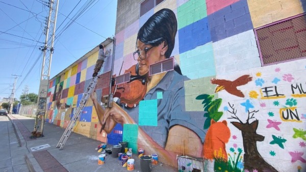 León, Guanajuato - Un mural de más de 100 metros cuadrados para representar a los menores que tocan algún instrumento en la Orquesta Soy León, es la forma en que el Infonavit busca impactar en los vecinos de la colonia León ll.
