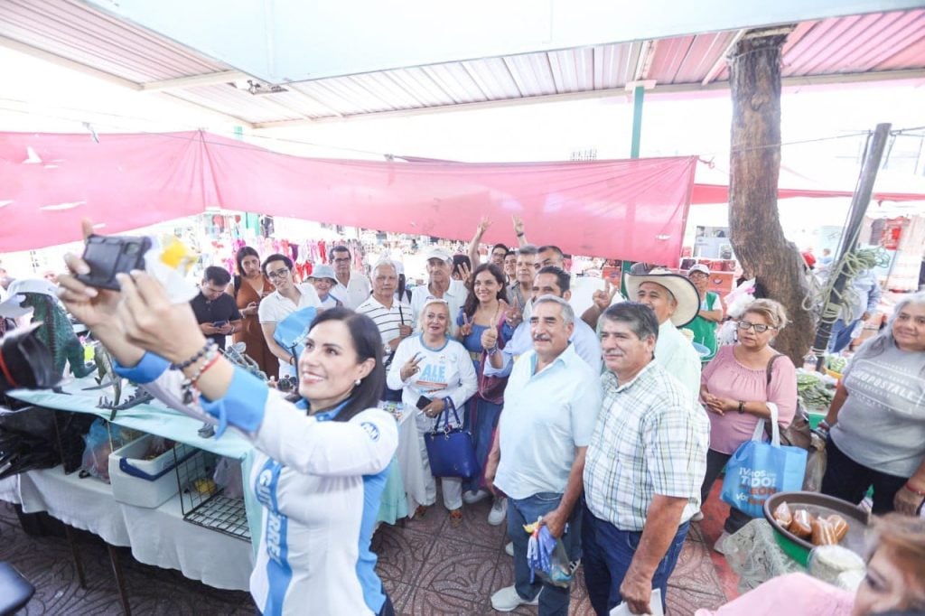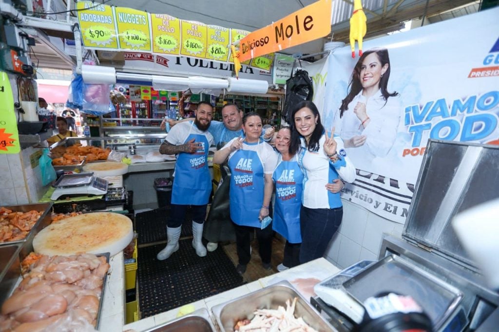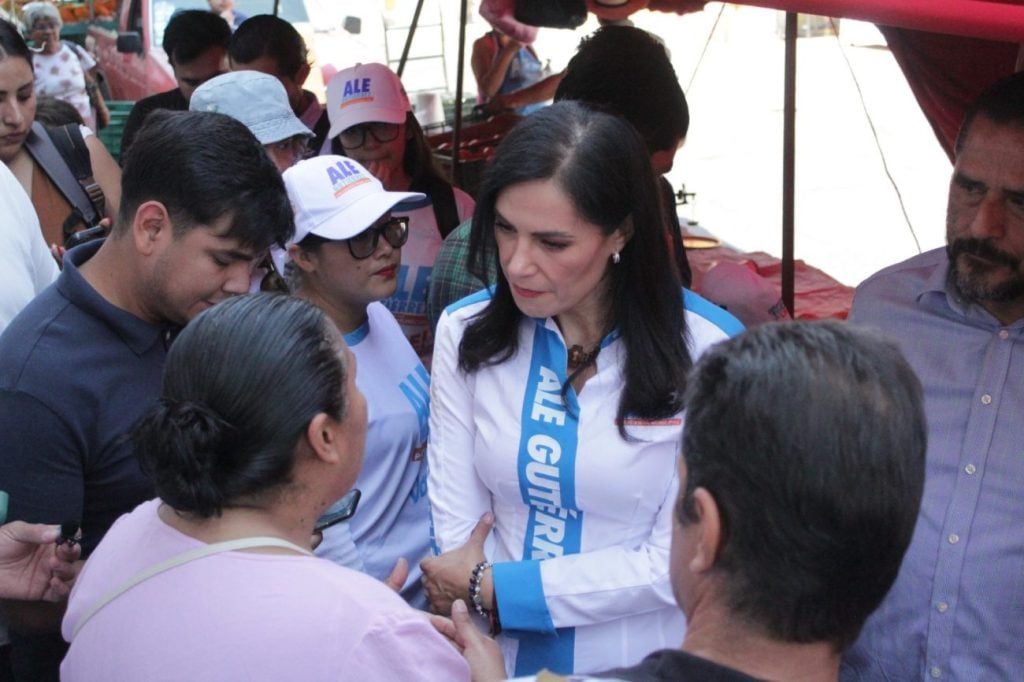 Por Luis Alberto Martínez / León, Guanajuato – Ale Gutiérrez, candidata del Partido Acción Nacional (PAN) a la alcaldía de León, realizó un recorrido por el emblemático tianguis y mercado Carro Verde este miércoles, para dialogar con los comerciantes y exponer sus iniciativas que contribuirán al desarrollo del comercio local.