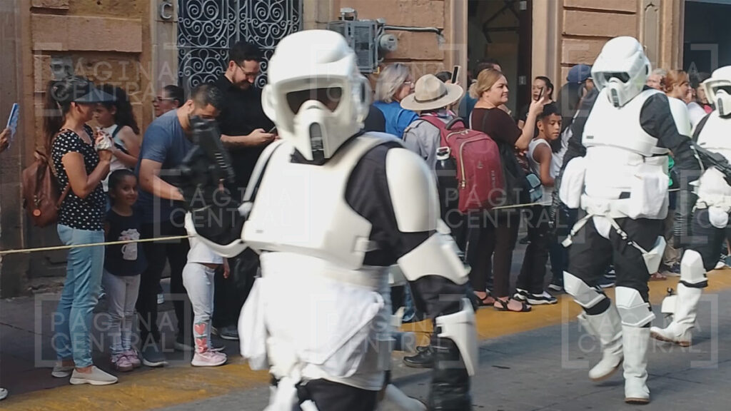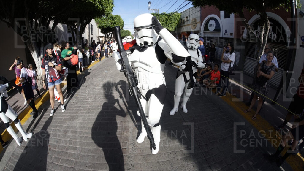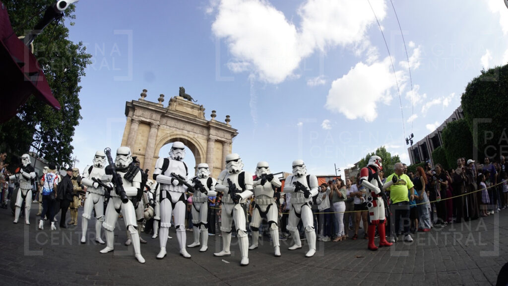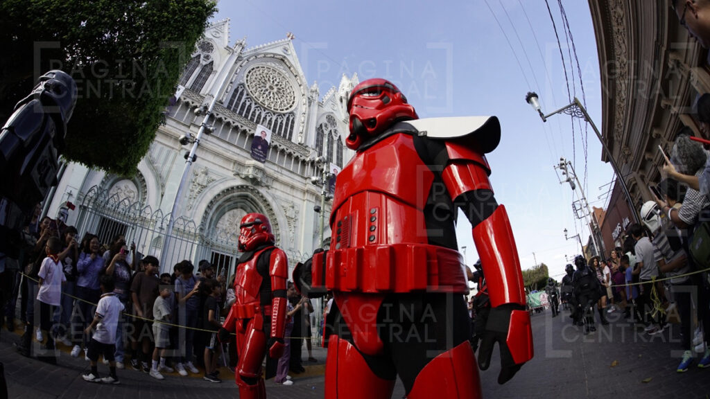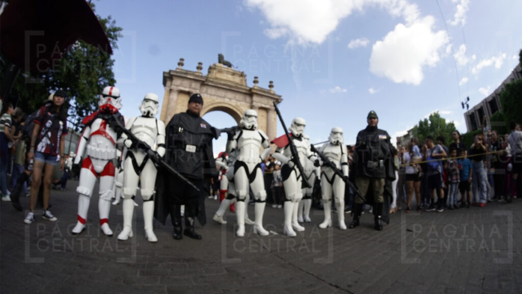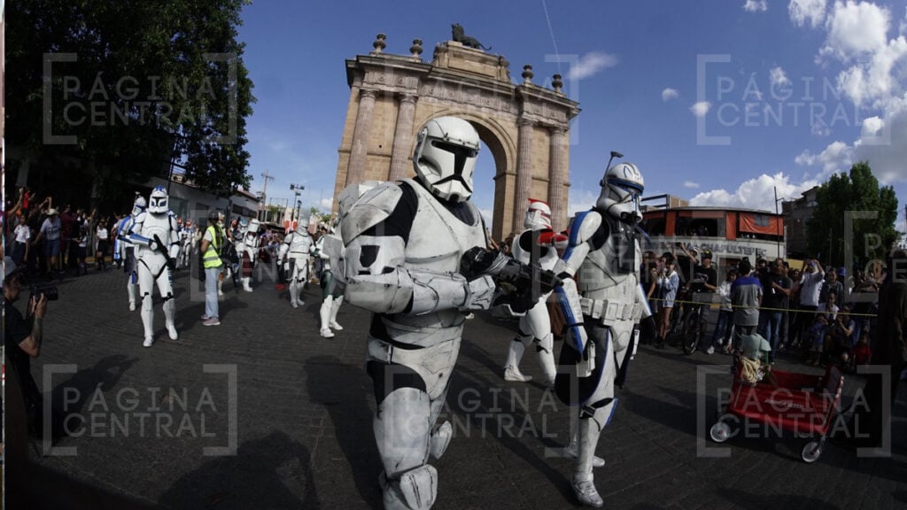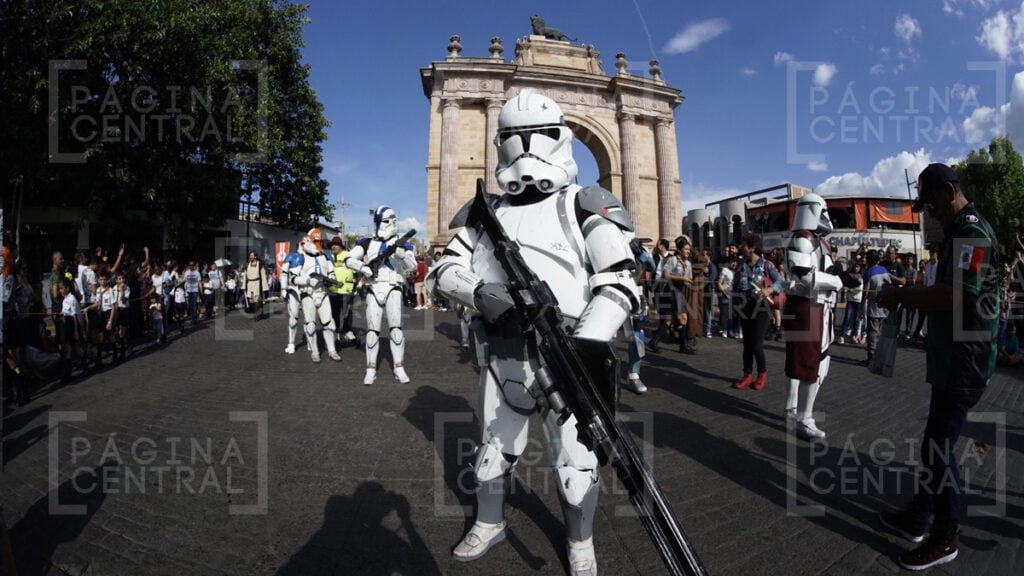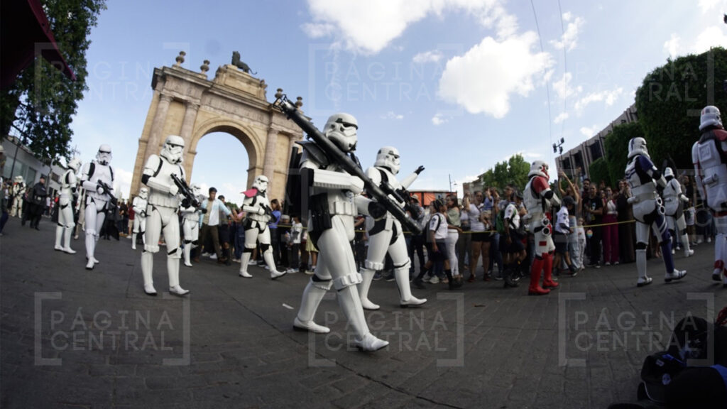 Al llegar a la Plaza Expiatorio, la Legión 501 realizó una parada y algunos permitieron fotografiarse por las decenas de asistentes. Ahí se quedaron hasta las cinco de la tarde y avanzaron hasta la zona peatonal.