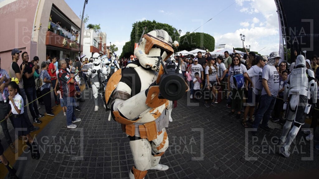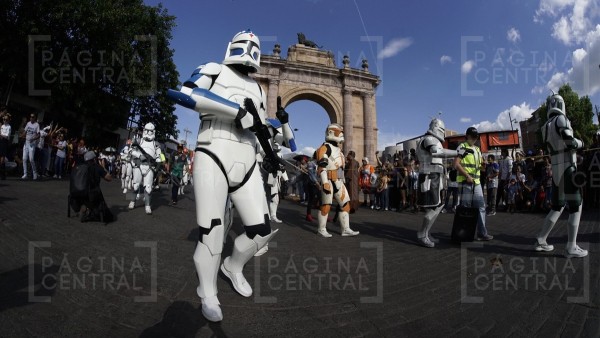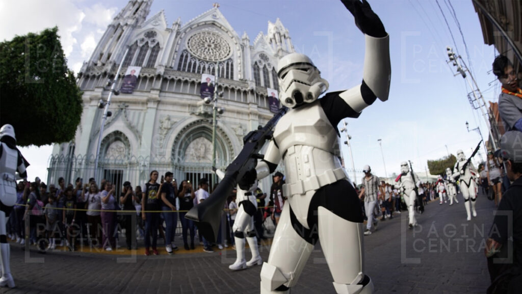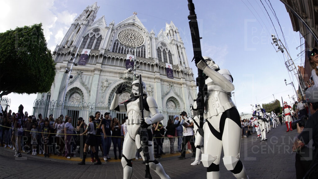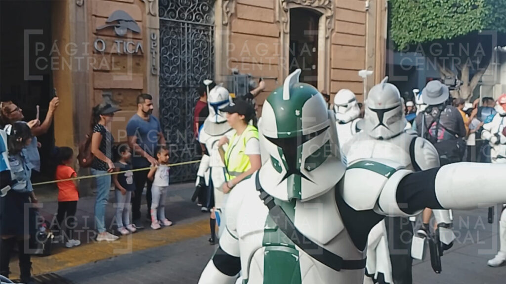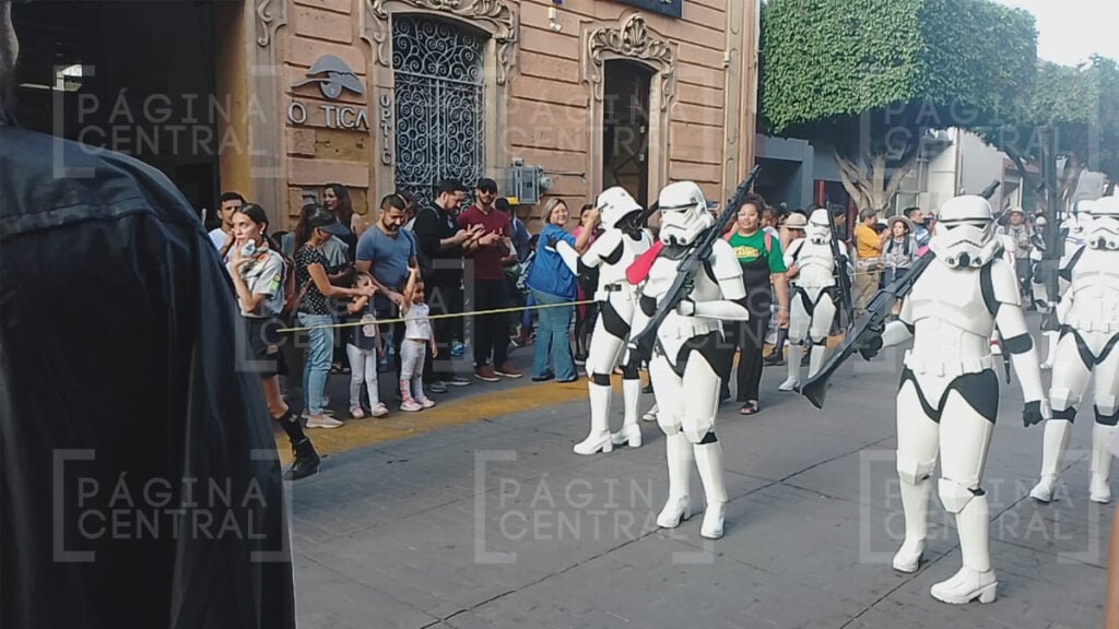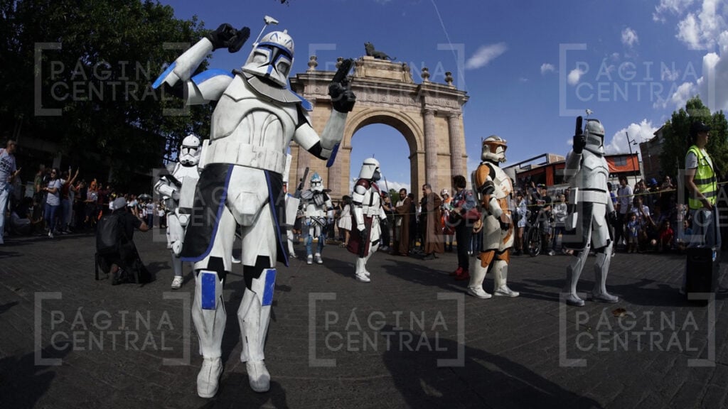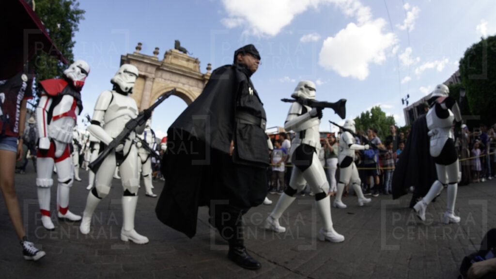 Al llegar a la Plaza Expiatorio, la Legión 501 realizó una parada y algunos permitieron fotografiarse por las decenas de asistentes. Ahí se quedaron hasta las cinco de la tarde y avanzaron hasta la zona peatonal.