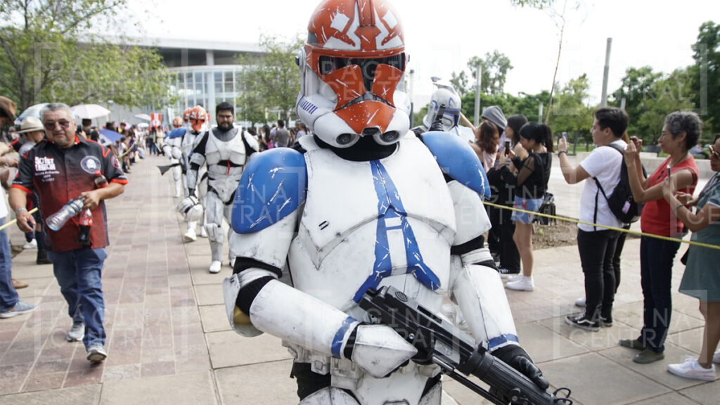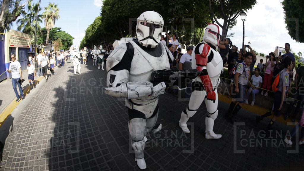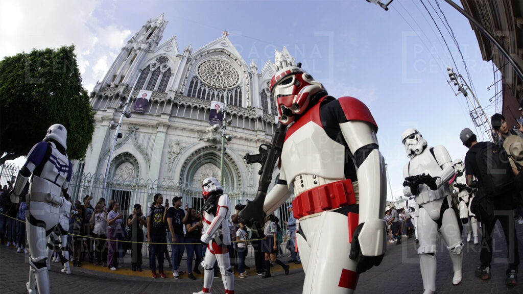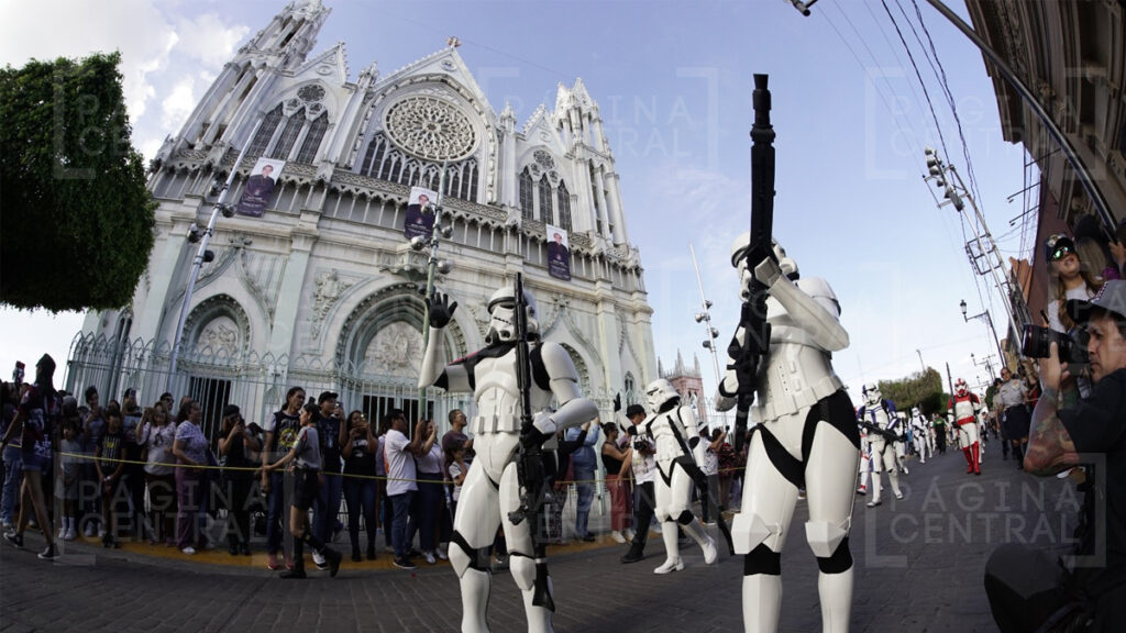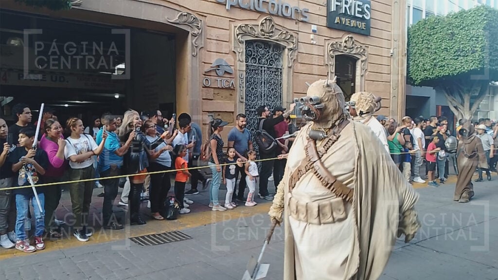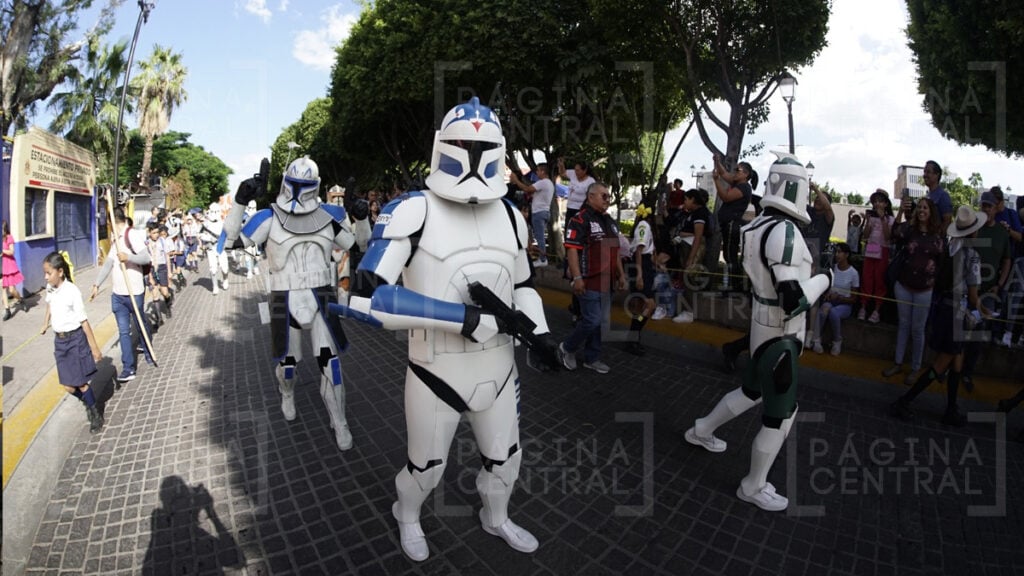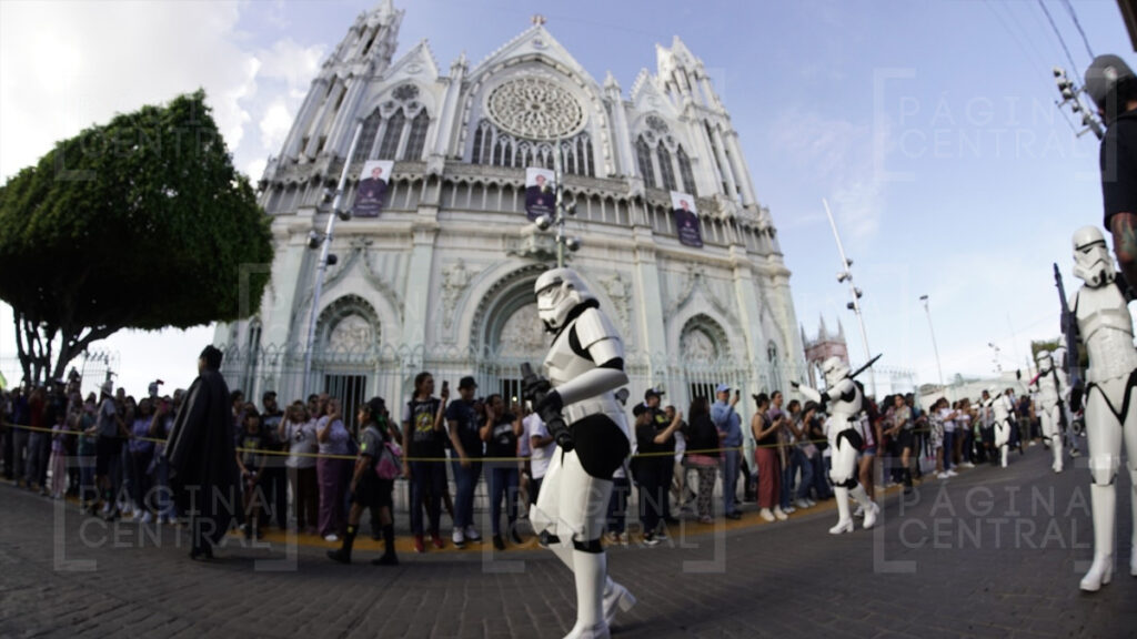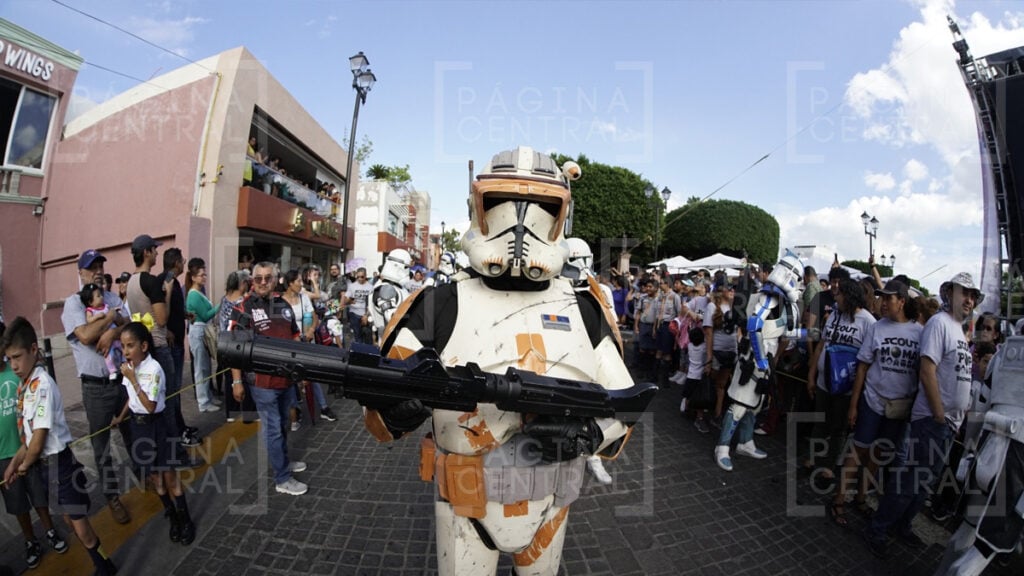 Al llegar a la Plaza Expiatorio, la Legión 501 realizó una parada y algunos permitieron fotografiarse por las decenas de asistentes. Ahí se quedaron hasta las cinco de la tarde y avanzaron hasta la zona peatonal.
