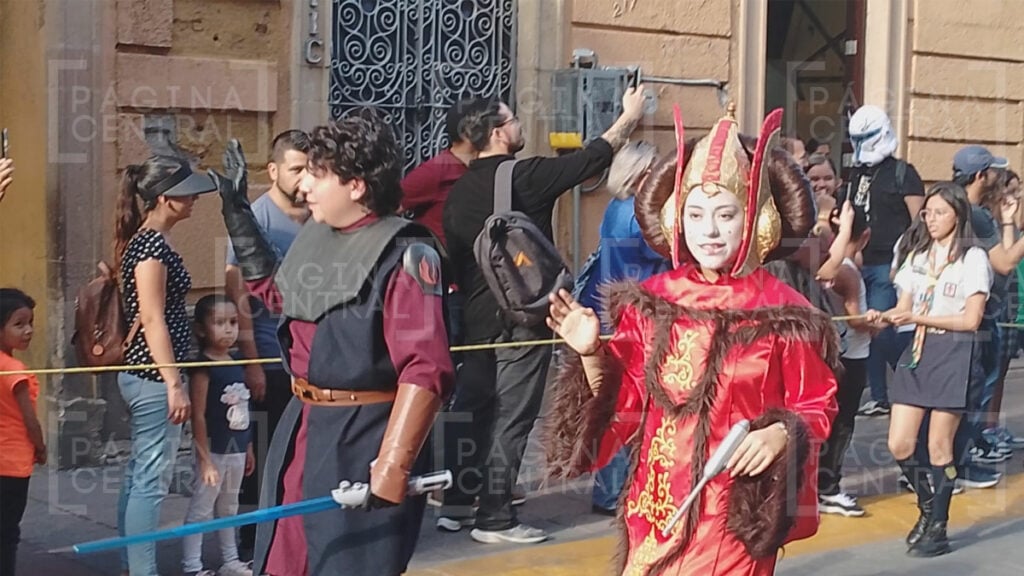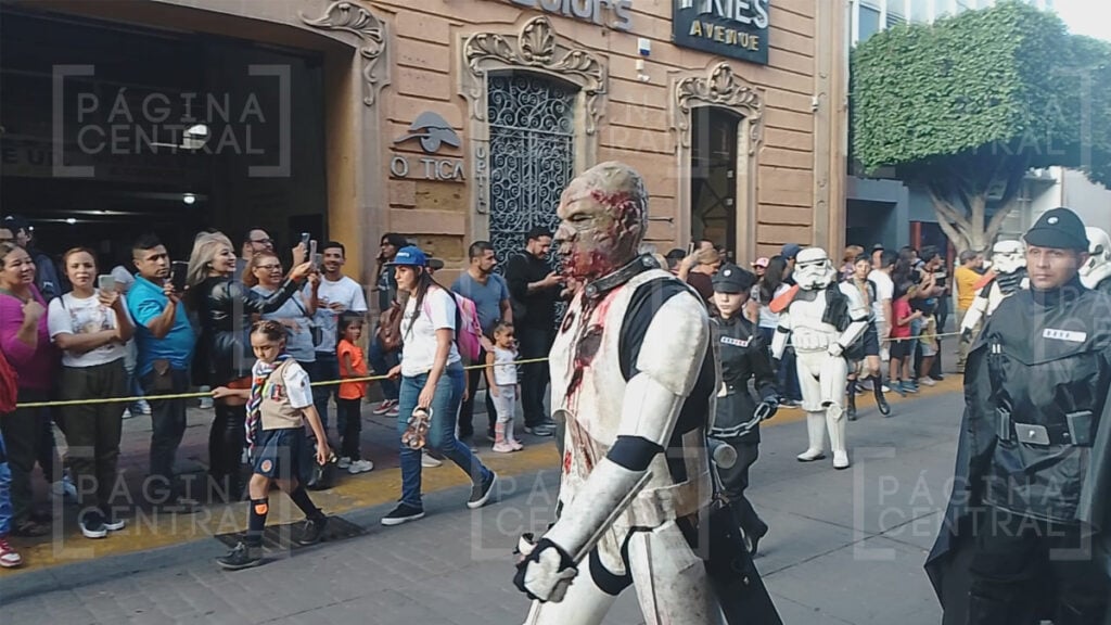 León, Guanajuato - Este sábado por la tarde se realizó el desfile de los icónicos personajes de la saga de Star Wars, como Darth Vader, el emperador Palpatine, Kylo Ren, Padmé Amidala, decenas de Stormtroopers, entre otros.
