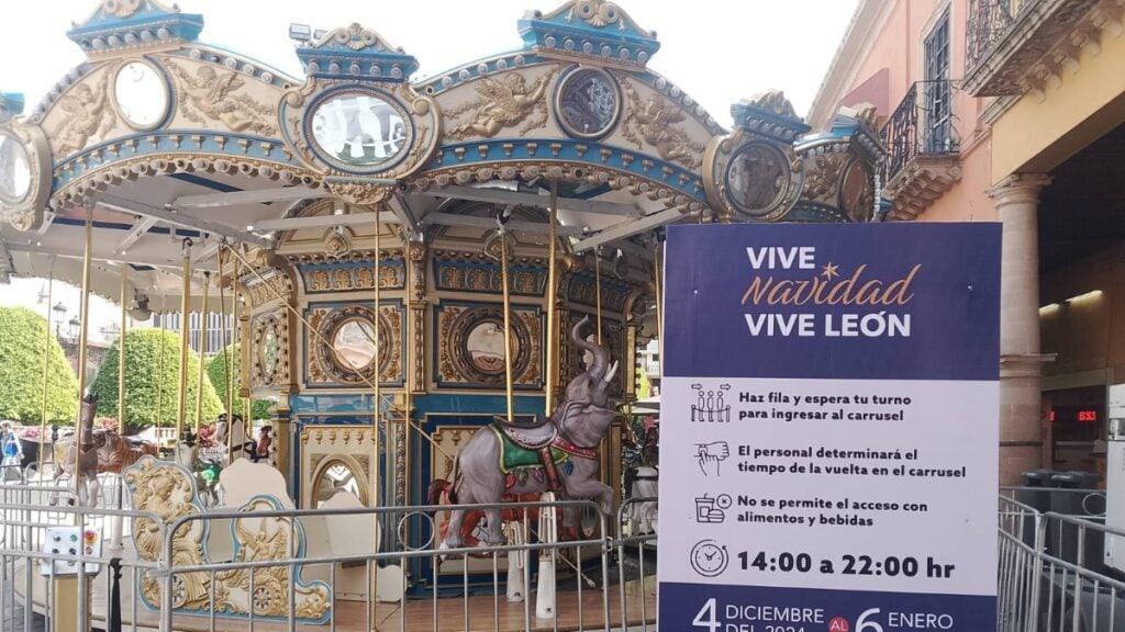León, Guanajuato - Como parte del programa Vive Navidad, el Municipio de León ofrecerá un carrusel gratis en el centro de la ciudad. Desde el 4 de diciembre hasta el 6 de enero, esta atracción estará disponible para niños y adultos que deseen disfrutar de la magia de la temporada.