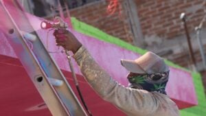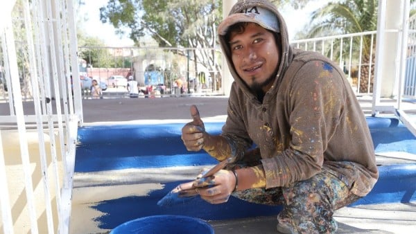 Los vecinos de la zona son los encargados de pintar sus propias fachadas con materiales otorgados por el gobierno municipal.