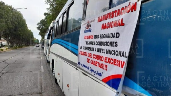 Organización de Transportistas A.C. (Amotac) se manifestaron en el bulevar Francisco Villa, esquina con la avenida Paseo de los Niños, donde operadores exigieron al gobierno federal seguridad, pues son víctimas de asaltos, asesinatos y secuestros en