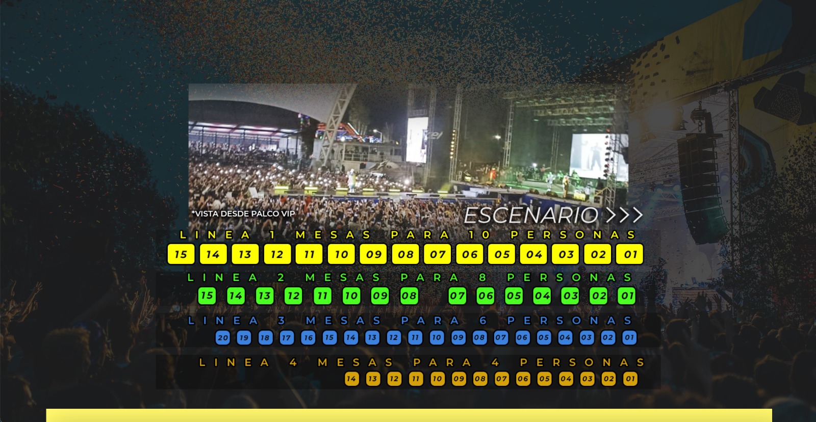 De acuerdo con los encargados de la venta de las mesas, cada una de las filas estarán a desnivel, lo que permitirá que los de adelante no tapen la visión hacia el artista.