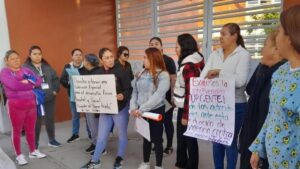 “Tengo derecho a ser respetado. Exigimos la intervención urgente de las autoridades ante esta situación de violencia contra los niños por la maestra Dolores”, expresaron en la manifestación, a través de cartelones.