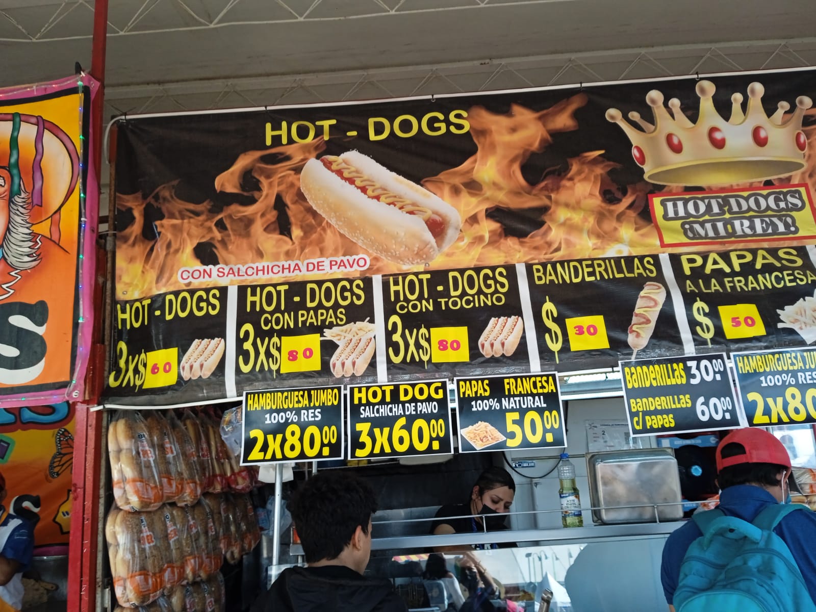 - Hot dogs: 3 por 50 pesos