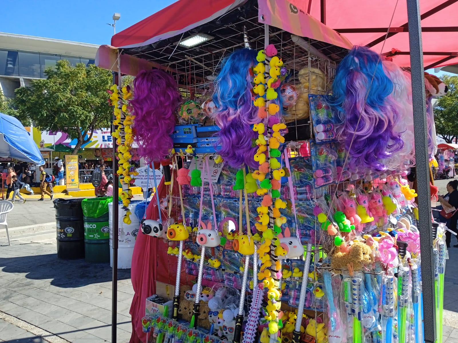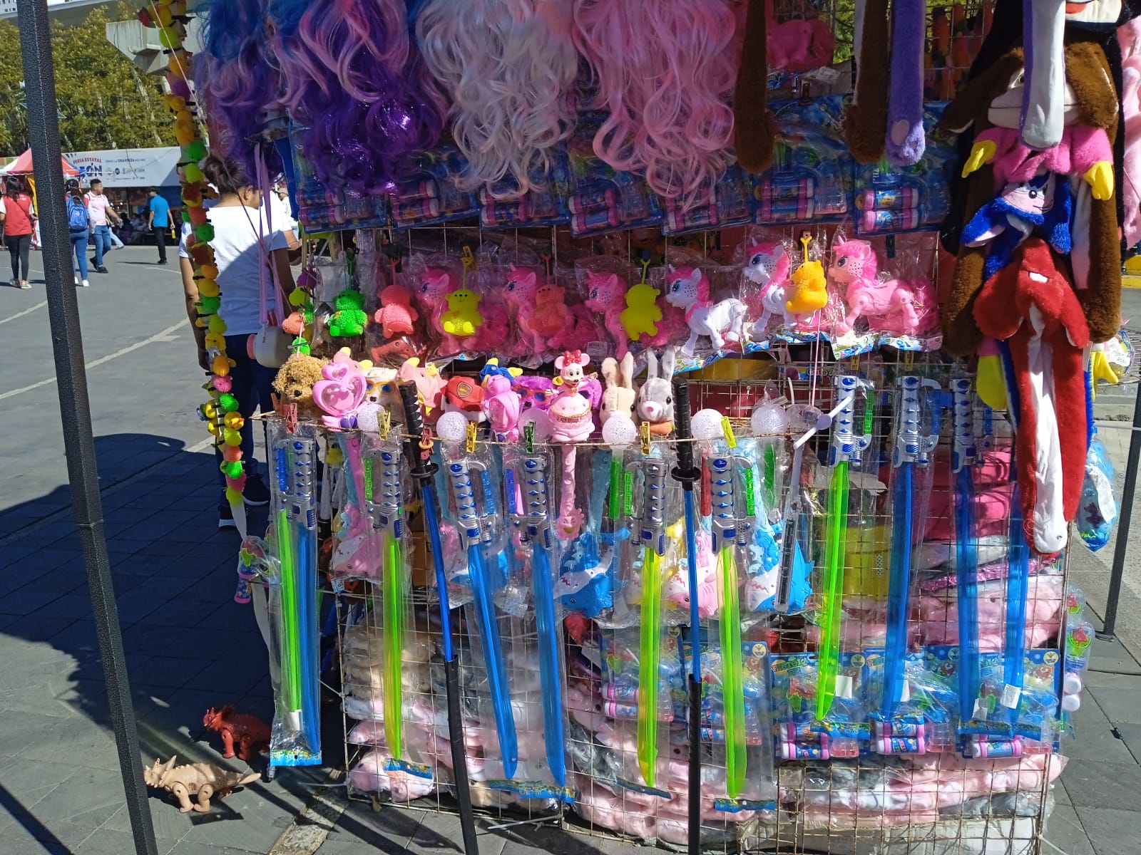 Una vez concluidos los alimentos se antoja dar un paseo para visitar lo que la feria ofrece, y en el camino, a los niños se les antoja el juguete de moda que exhiben a cada paso que se da.