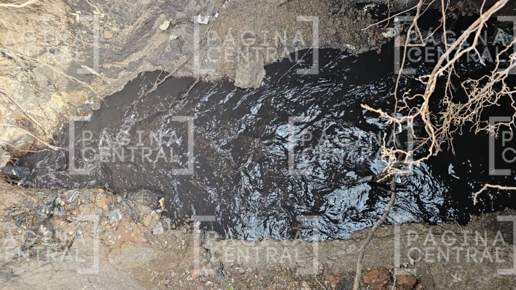León, Guanajuato - A solo tres metros de distancia de la intersección entre las calles Miguel de Cervantes Saavedra y Pradera, el drenaje de aguas negras ha quedado al descubierto debido a un socavón provocado por las recientes lluvias en el camellón de la colonia Parques del Sur.
