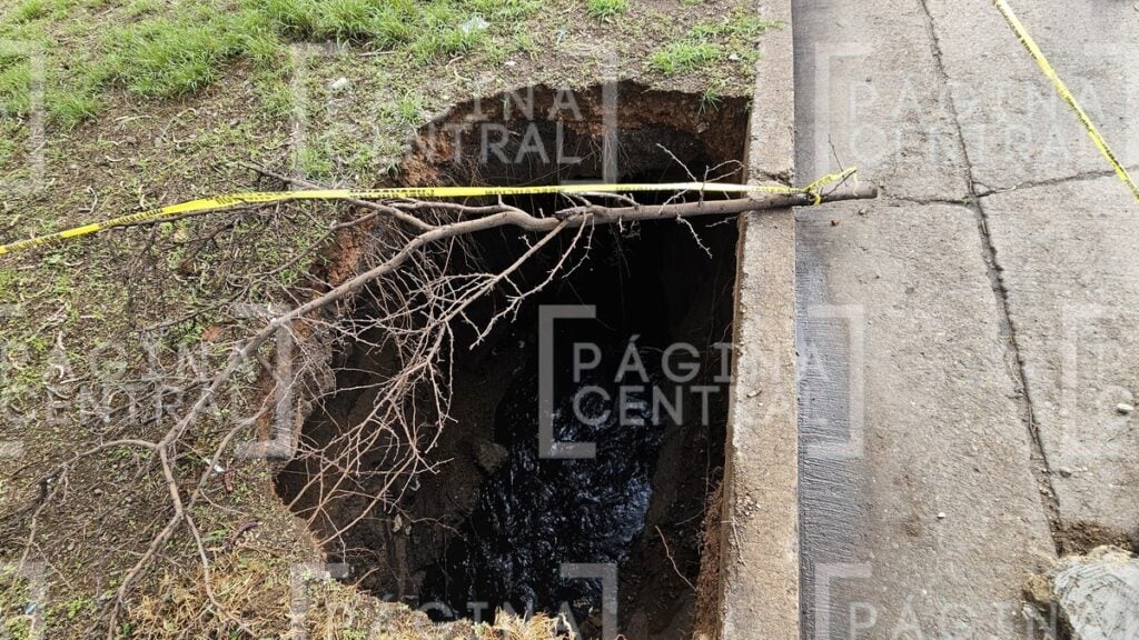 La mañana de este jueves, vecinos alertaron a las autoridades sobre la aparición de este peligroso agujero en el borde del pasto y el concreto de la vialidad.