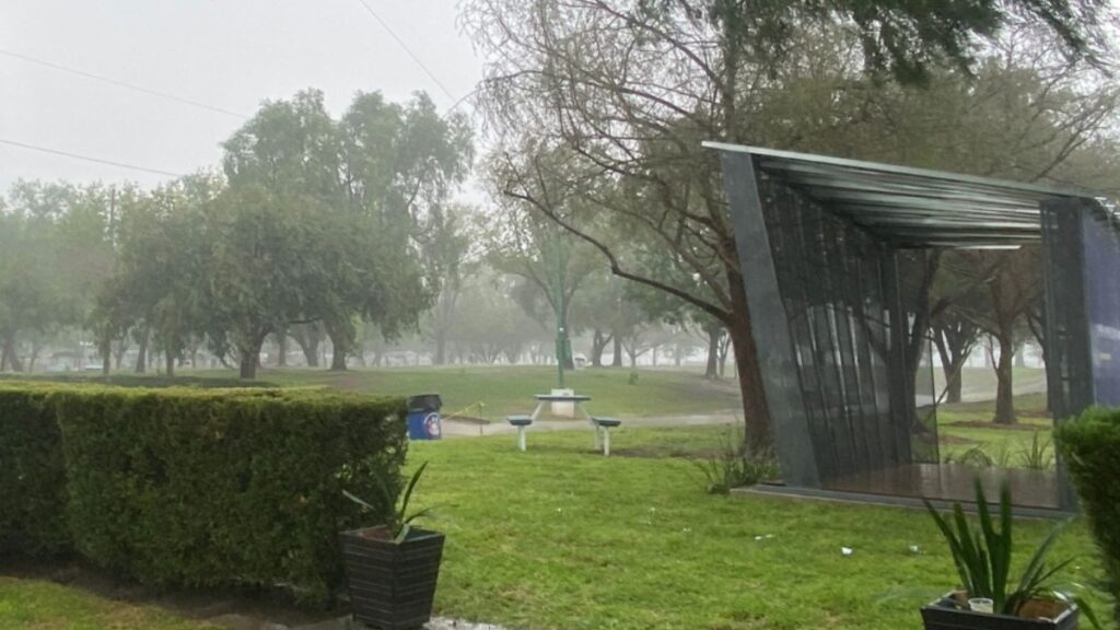 El aguacero comenzó primero en la Zona Centro y después se extendió a otras colonias y bulevares como Timoteo Lozano y Hermanos Aldama.