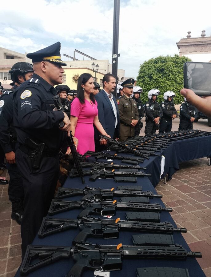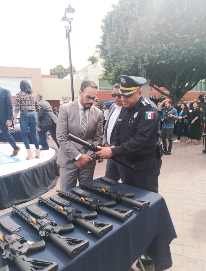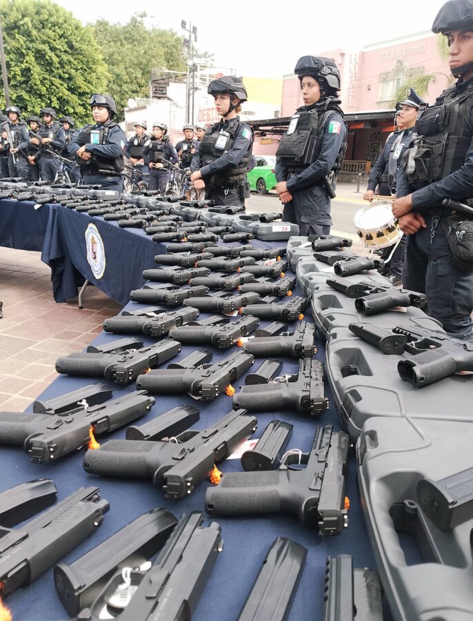 Hoy entregamos 500 armas cortas y 50 largas, con sus cargadores, así como equipo para su limpieza. Cada agente cuenta con competencias y adiestramiento para este equipo", señaló el secretario de Seguridad Pública, Prevención y Protección Ciudadana, Jorge Guillén Rico.