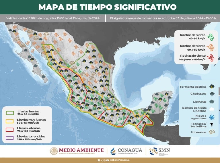 Más información en: https://t.co/sb6Eg77CGh pic.twitter.com/V6sa8EgIml— Conagua (@conagua_mx) July 13, 2024