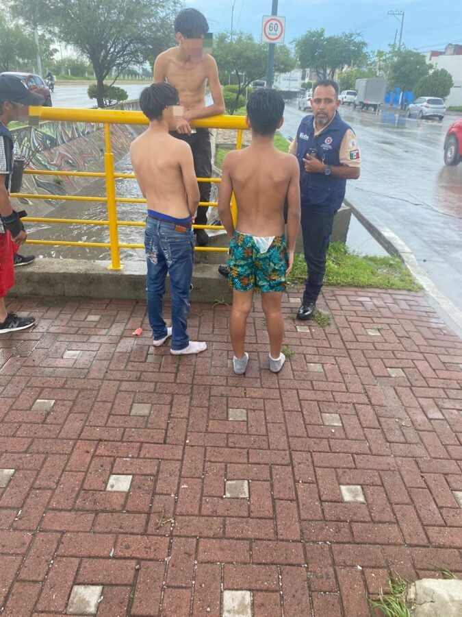 En otro caso se detectaron niños en short en el bulevar Timoteo Lozano, todos listos para meterse a nadar al arroyo que cruza la zona, e igualmente se pidió que se les retirara por el riesgo inminente.