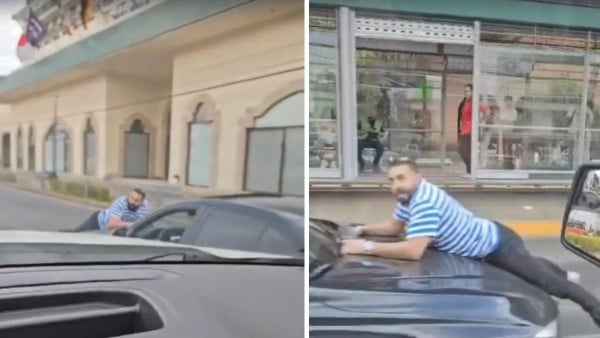 Difunden videos en los que se ve a un hombre sobre el cofre de un auto en movimiento ante la mirada atónita de automovilistas y transeúntes