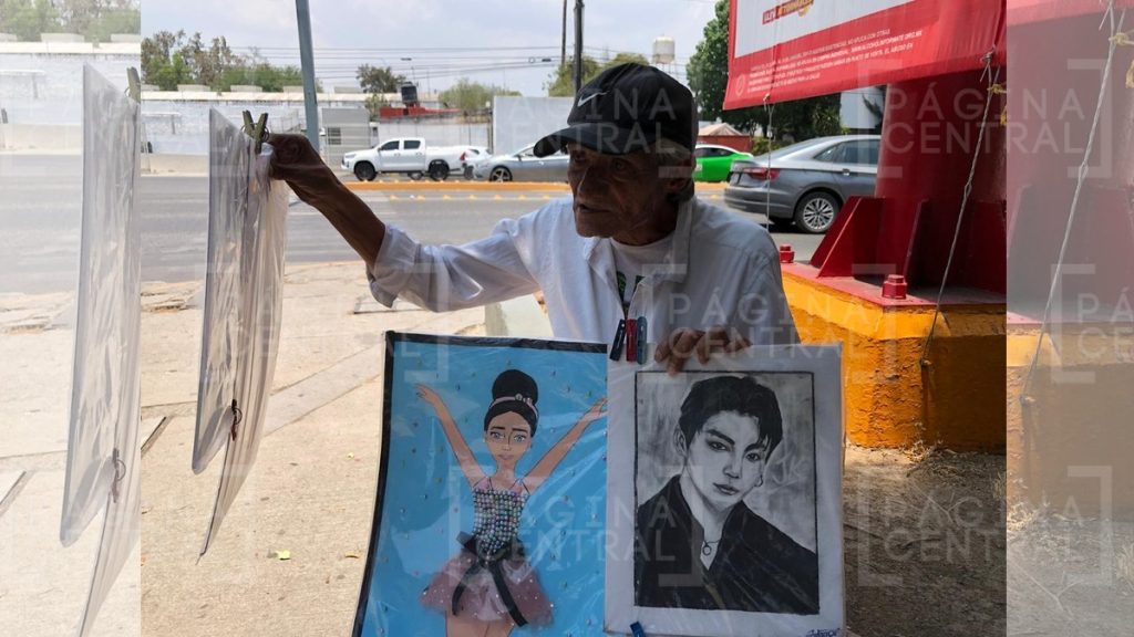 León, Guanajuato - Con sus pocas fuerzas, Don Mario de 77 años camina entre los autos para vender los dibujos que sus nietas hacen y así poder sobrevivir, pero lleva dos semanas sin vender ni uno solo.