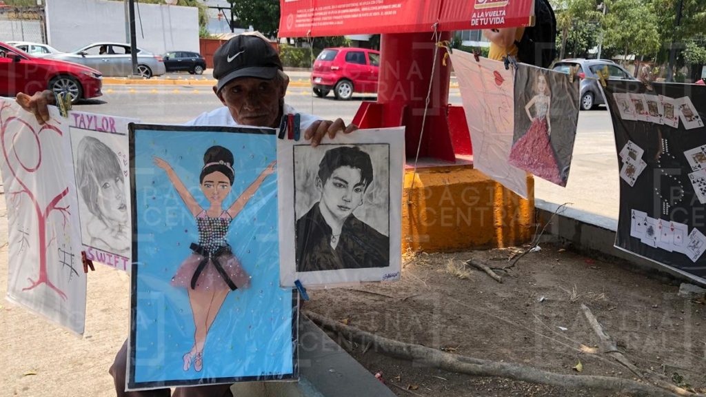 Entre los dibujos que Mario Arnulfo vende, está el rostro de Tylor Swift