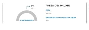 El Palote estaba casi al 14 % de su capacidad total que es de 10 millones de metros cúbicos. Todavía a mediados de febrero registraba estar al 6 % de su capacidad total, avanzando rápidamente hacia su destino de vaciarse por completo.
