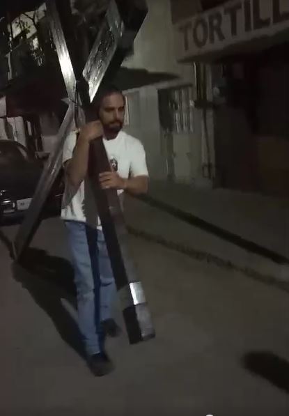 Cristo del Calvario fabrica su propia cruz y ¡pesa 70 kilos!