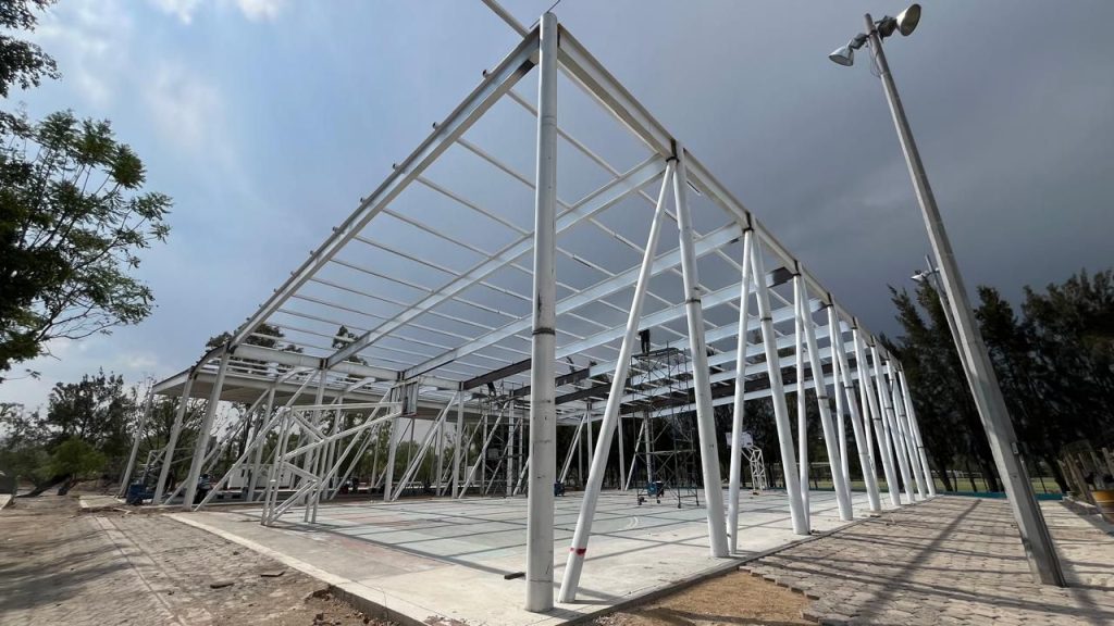 Avanza la techumbre en las canchas de basquetbol y voleibol.