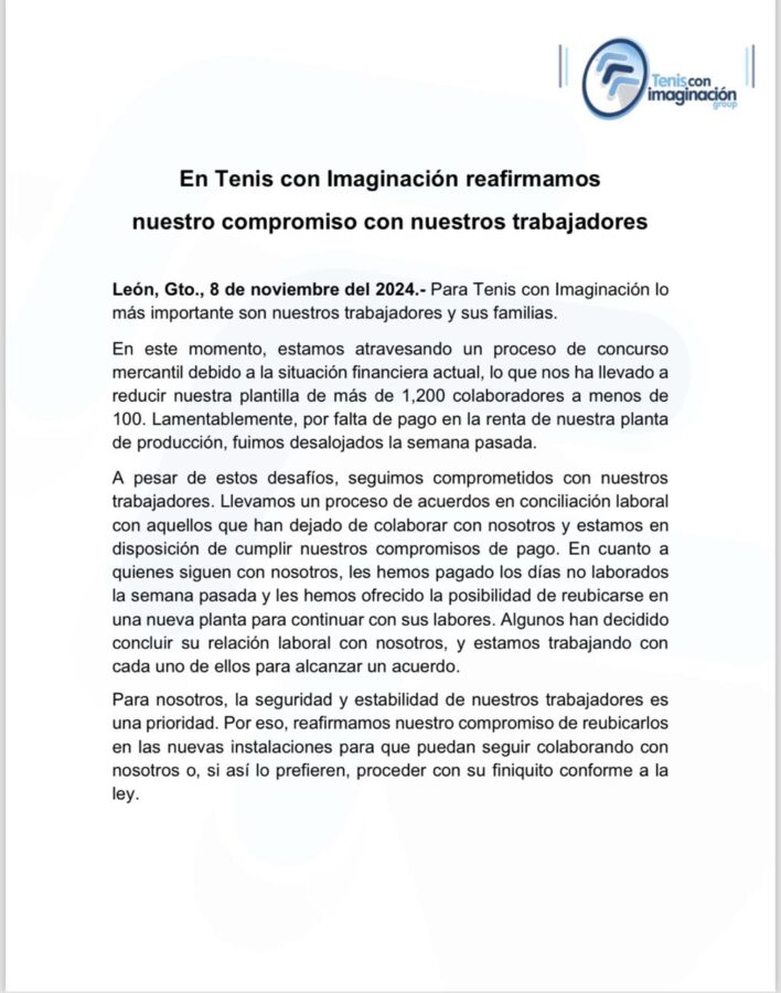 A pesar de los desafíos, Tenis con Imaginación ha manifestado su compromiso con los empleados y sus familias.